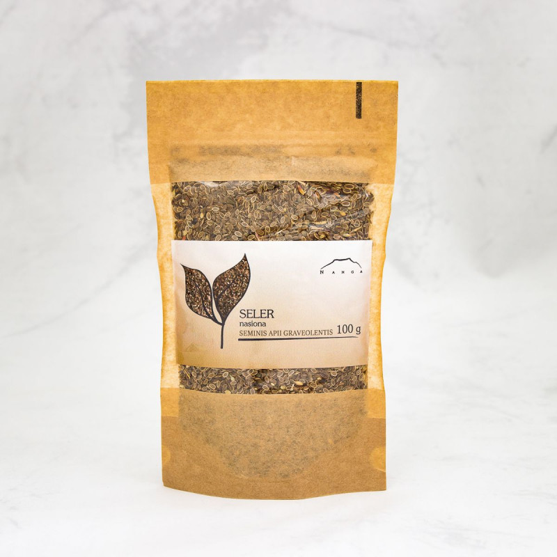 Zutaten: Selleriesamen (Apium graveolens) 100%. Rohstoff von höchster Qualität! Zu den bioaktiven Verbindungen, die in Selleriesamen enthalten sind, gehören Flavonoide, Cumarine, ätherische Öle und Linolensäure aus der n-6-Gruppe.
