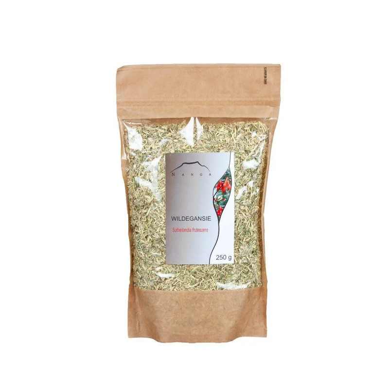Wildegansie (Sutherlandia frutescens) ist ein sehr interessantes afrikanisches Kraut. Diese Pflanze ist in Südafrika weit verbreitet – unter anderem bei den Zulu, Xhosa, Sotho, Khoi-San und den Kapholländern. Es wird von der lokalen Bevölkerung allgemein als Krebsbusch bezeichnet, in Anlehnung an anekdotische Berichte über eine signifikante Verbesserung der Lebensqualität von Menschen mit Krebs, die Sutherlandia eingenommen haben. Die Entdeckung einer Substanz namens Kanavan in der Zusammensetzung dieser Pflanze wirft ein wenig mehr Licht auf ihren möglichen Wirkmechanismus in diesem Bereich.