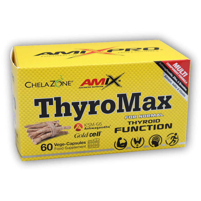ThyroMAX als Nahrungsergänzungsmittel in einer pflanzlichen Kapsel V-Caps® Plus für eine normale Schilddrüsenfunktion, Stress- und Angstabbau, bessere adaptogene Eigenschaften, psychische Gesundheit und Entspannung. Dank der großen Menge an Vitaminen und Mineralstoffen - Jod und Selen - kann es zur normalen Funktion der Schilddrüse beitragen.